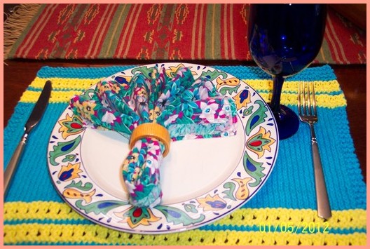 Knitted Colorful Placemat in Ridged Eyelet Borders