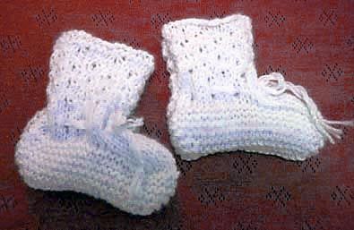 Oh, knitted lace baby booties are simply the sweetest little things! This charming accessory keeps those tiny toes warm and stylish at the same time. The delicate lace pattern adds a touch of elegance, making them perfect for special occasions or everyday wear. Handcrafted with love, these booties are not just adorable but also cozy and soft, providing utmost comfort for your little one. They make for a thoughtful and heartwarming gift that parents will surely cherish. So, whether it's a cute photo shoot or a cozy day at home, these knitted lace baby booties are a delightful addition to any baby's wardrobe.